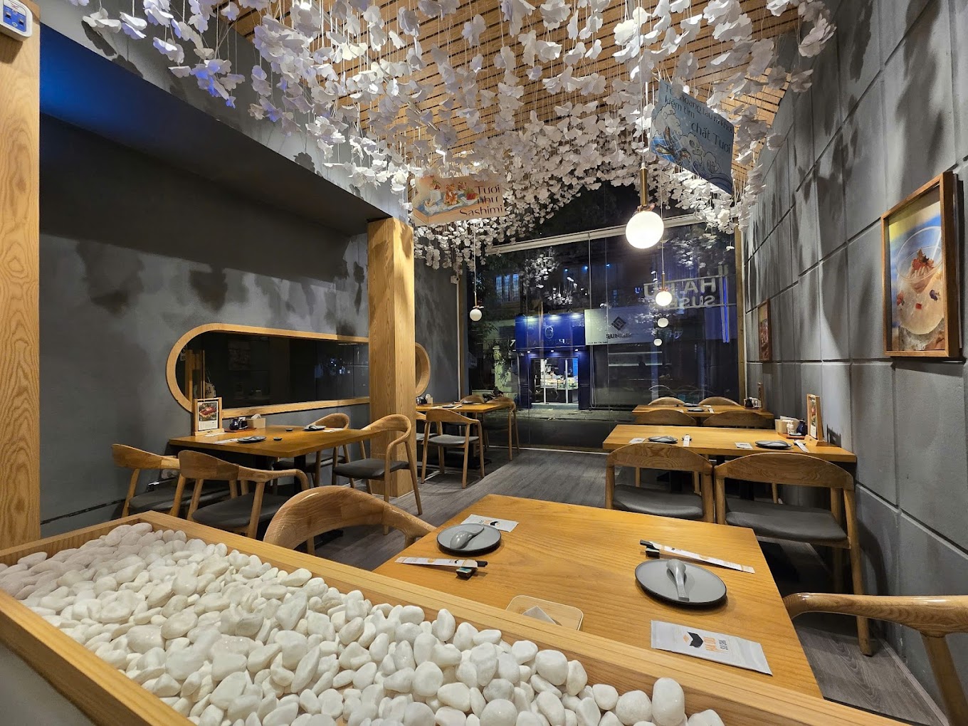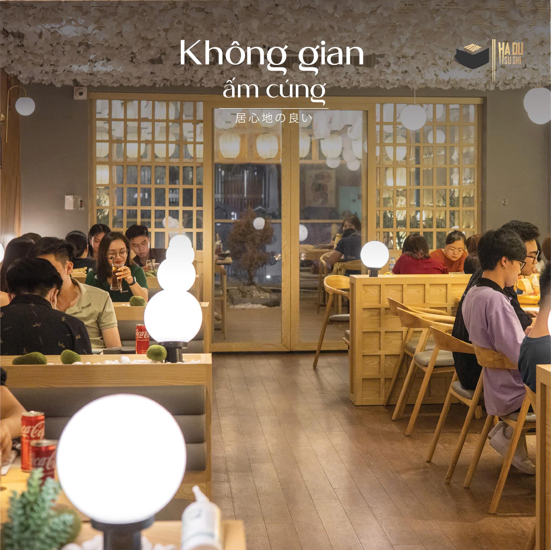 Không gian tại Hadu Sushi là sự kết hợp hài hòa giữa nét truyền thống Nhật Bản và phong cách hiện đại.