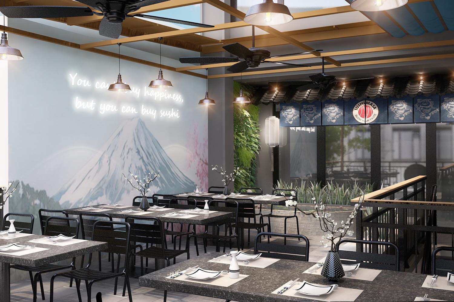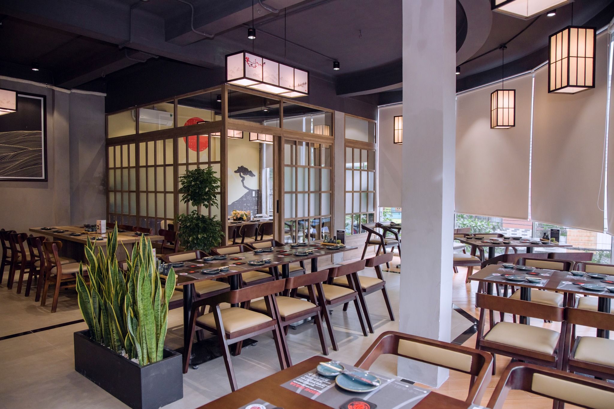 Không gian tại Masa Sushi được thiết kế tinh tế, kết hợp giữa phong cách truyền thống Nhật Bản và nét hiện đại. Từng chi tiết trong nhà hàng đều được chăm chút tỉ mỉ, từ cách bài trí bàn ghế, ánh sáng, đến những vật dụng trang trí mang đậm nét văn hóa Nhật Bản.