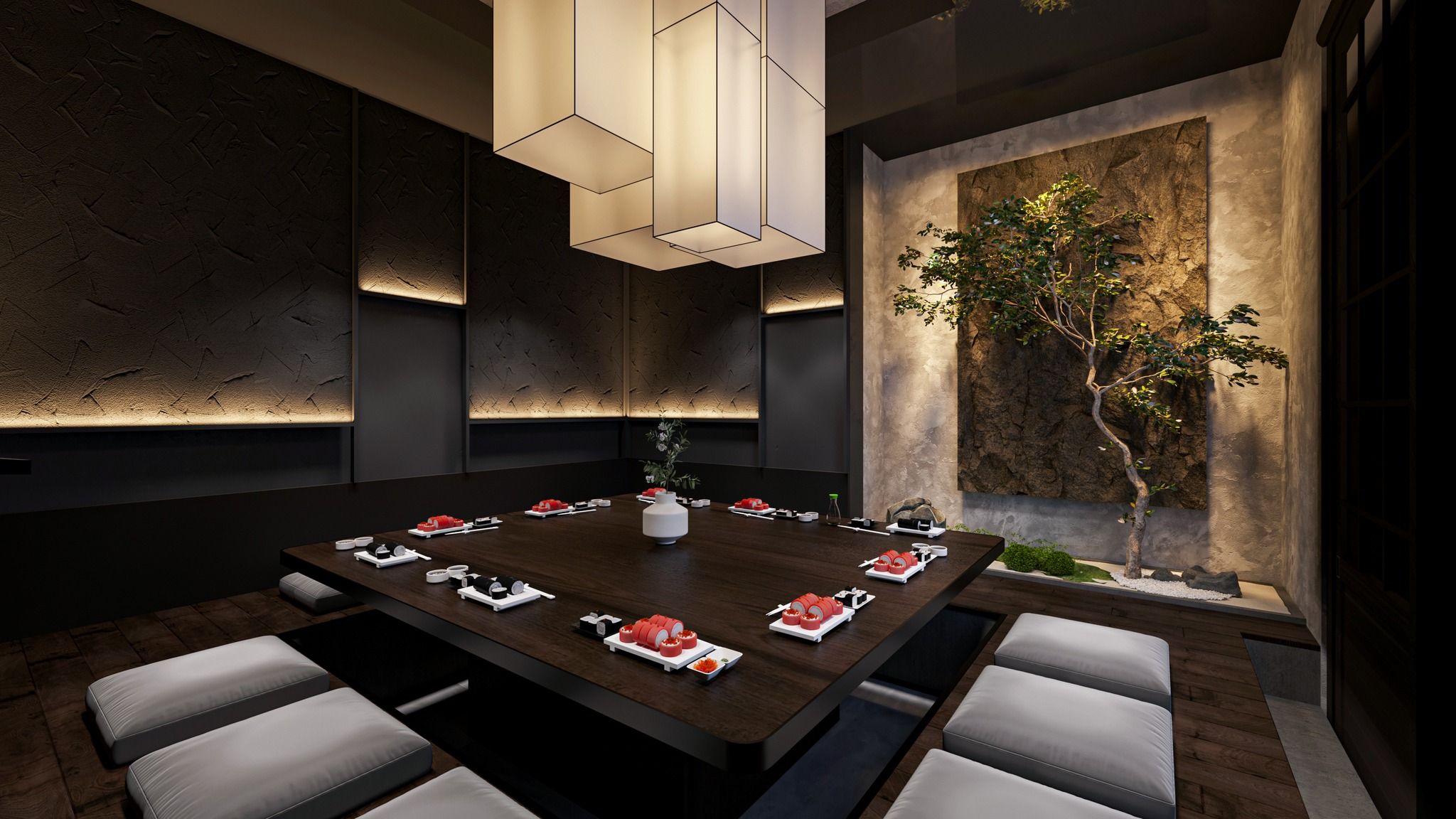 Không gian ấm cúng: Không gian nhà hàng được thiết kế tinh tế, mang lại cảm giác thoải mái và thư giãn. Khu vực sushi bar và bàn ăn riêng tư là những điểm cộng lớn, giúp thực khách có trải nghiệm ẩm thực trọn vẹn.